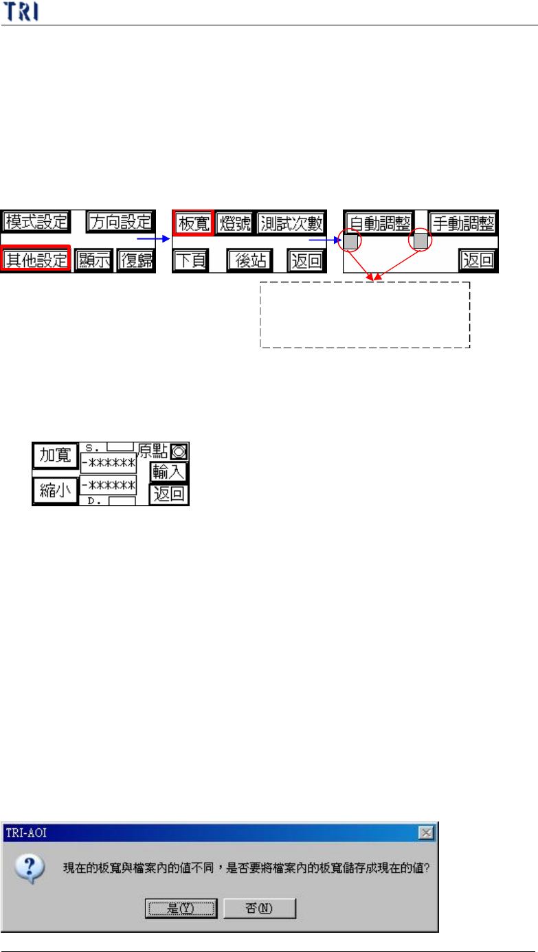 (3) 若目前所使用的板寬與存在程式中的板寬資訊不符合時,系統會出現以下訊
