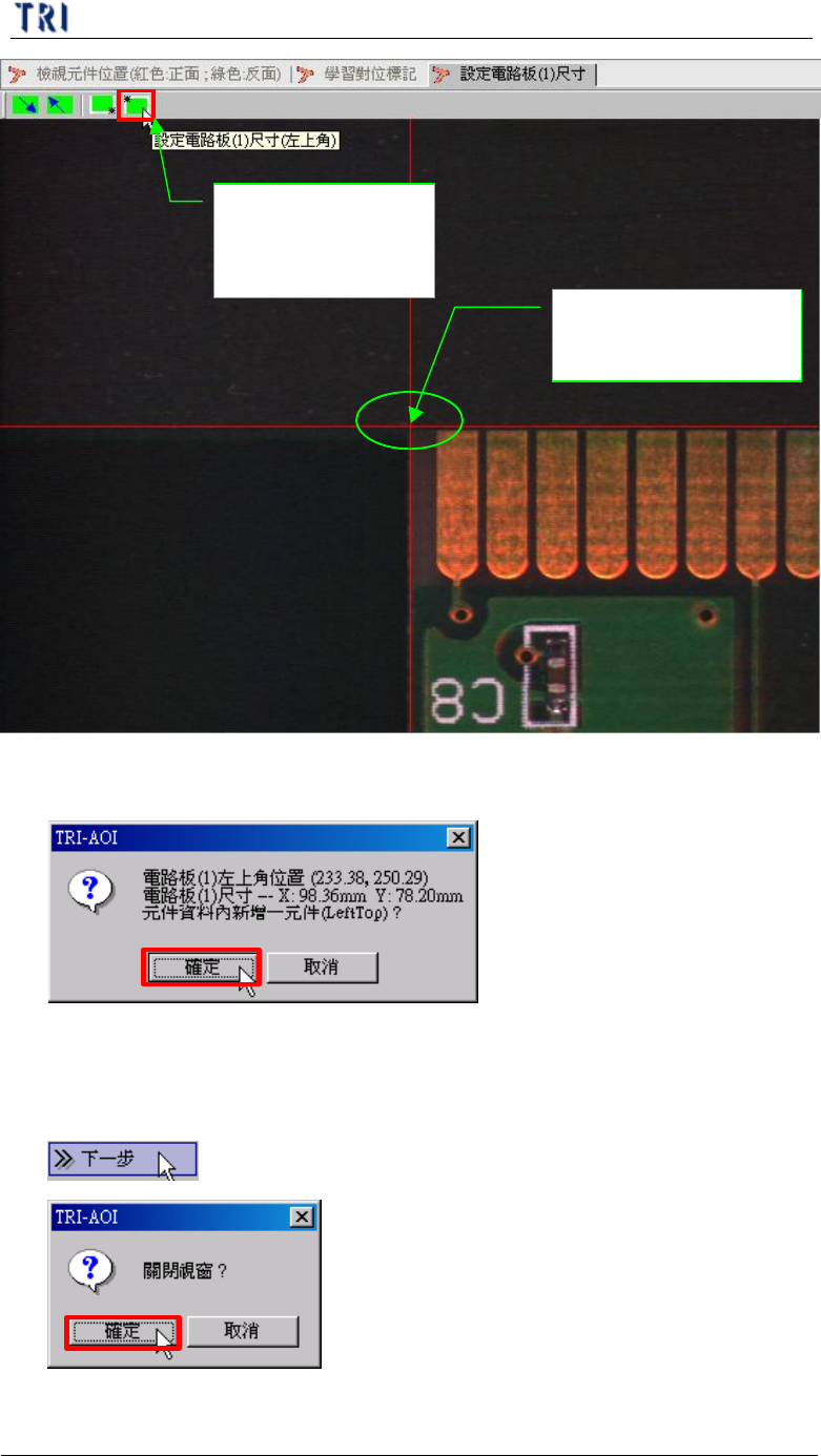 (4) 出現確認 1 號電路板左上角位置座標視窗,請按[確定]。