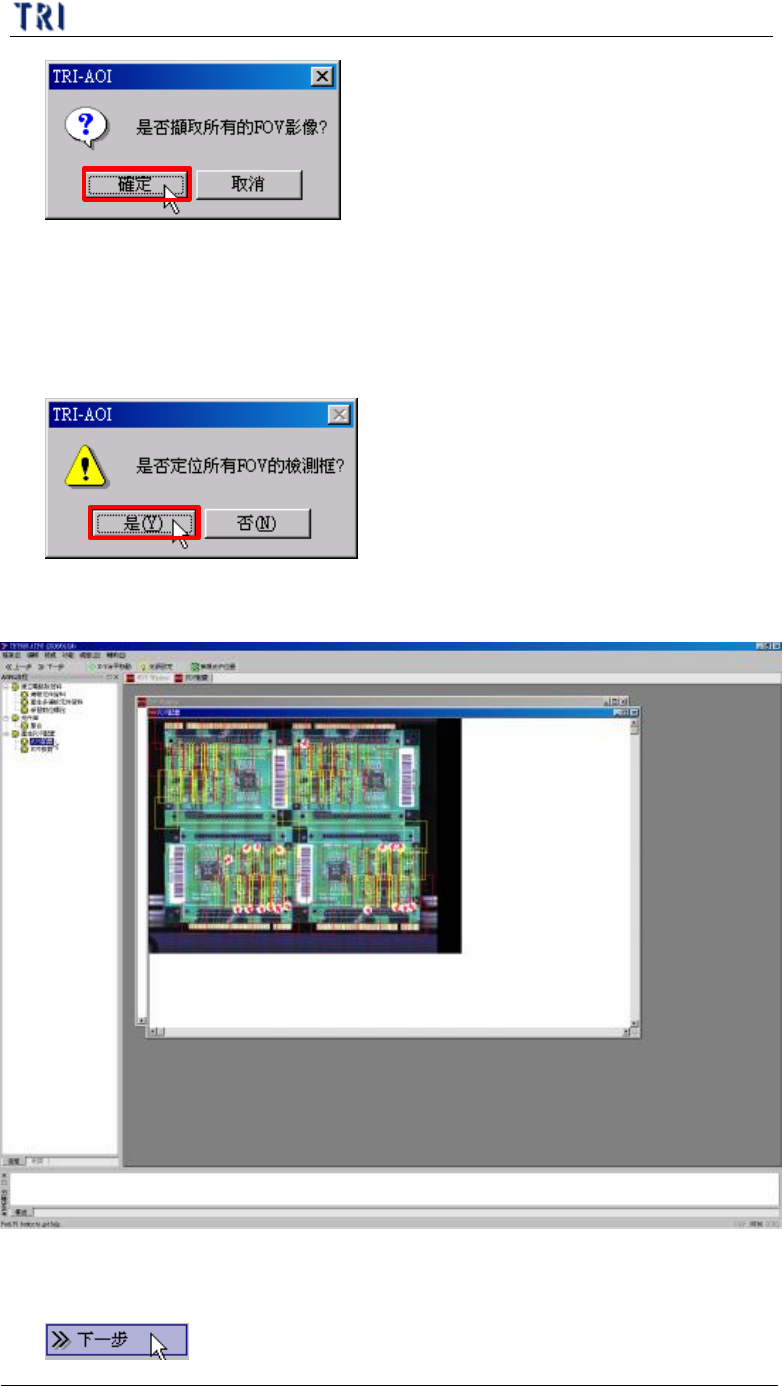 (6) 出現[是否定位所有 FOV 的檢測框],按[ 是]表示對於在元件資料庫中有抓取