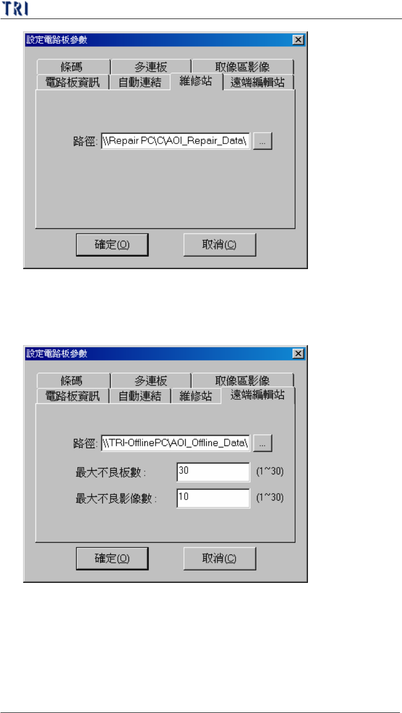 l 最大不良板數 – 設定在遠端編輯站中所要保存的檢測結果次數的上限,可