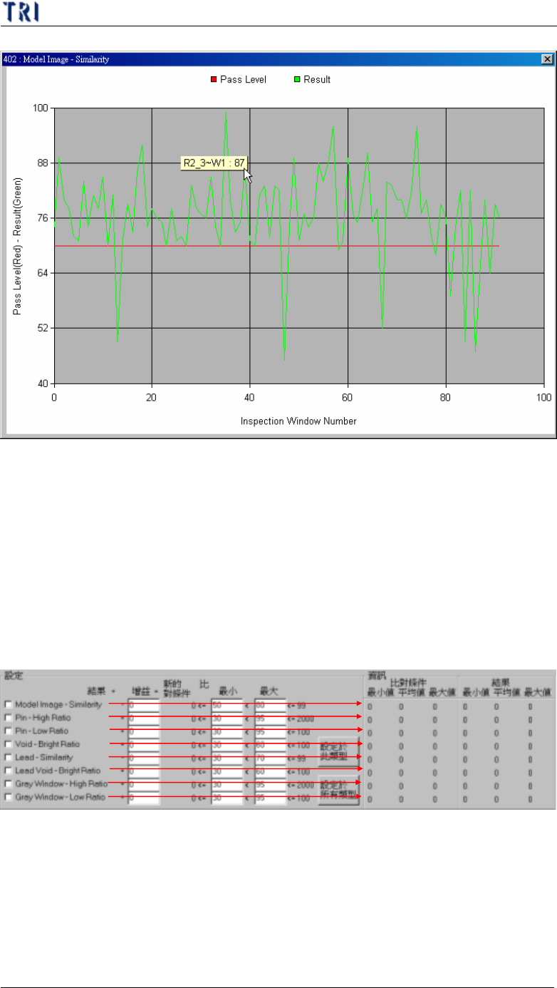 測參數與檢測結果,若結果為 0 表示此元件沒有該種檢測框。可在此視窗選