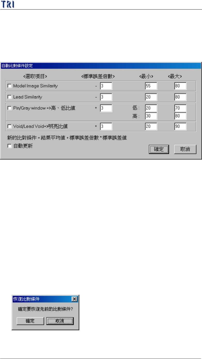對條件,可按下[恢復比對條件]即可恢復前一次的設定。