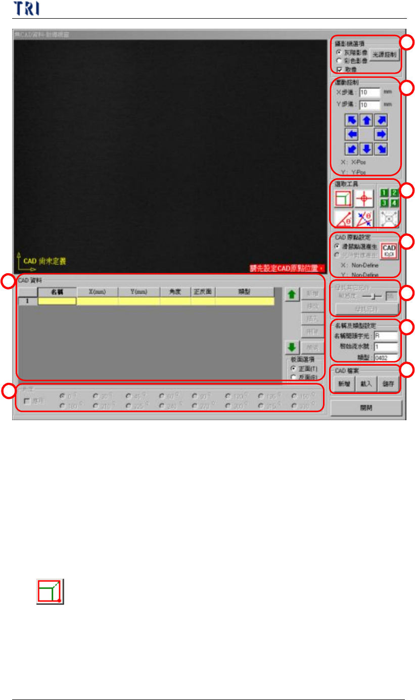 n 定義元件座標的工具。點選此按鈕會出現一組十字線條,若以此工具來