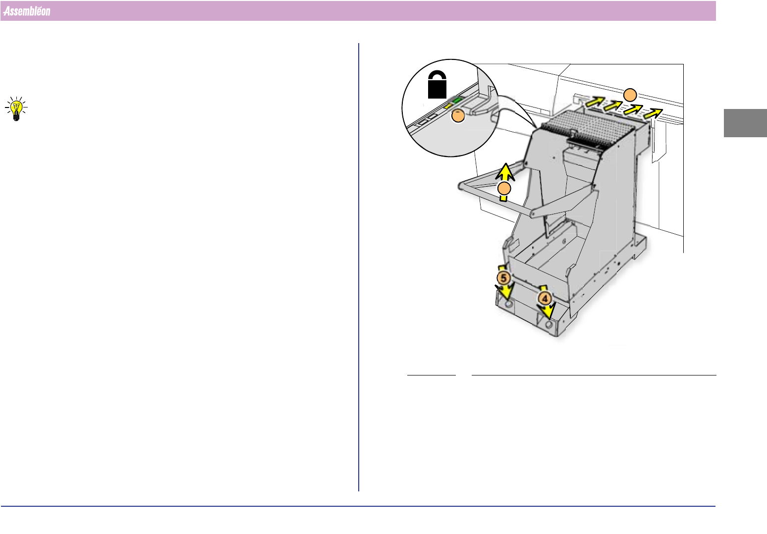 • 按按钮 (4),直到供料器料车完全抬起。 当锁定时,绿