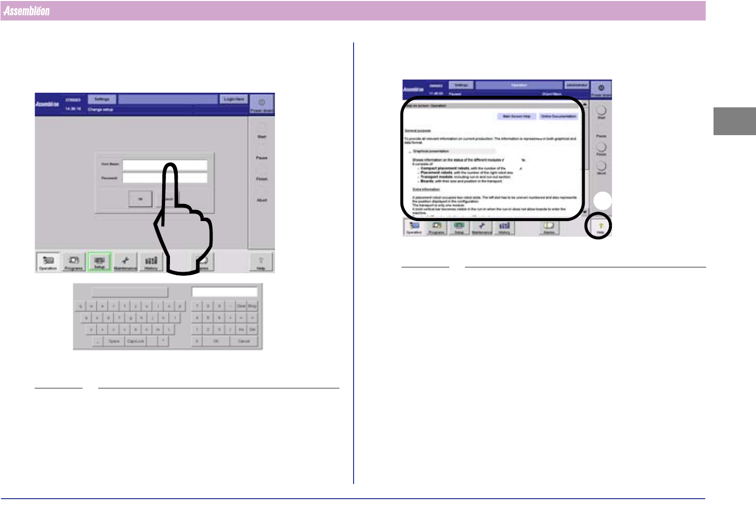 4022 593 50621 操作手册 06.01 AX 系列 24 一般机器信息 2.7 图形用户界面 机器通过触摸屏进行操作。敲击触摸屏可以激活所需的功 能。不需要使用键盘。触摸屏下面的机台中的键盘仅在维 修时使用。 2.7.1 约定 图 23 触摸屏 激活触摸屏上的按钮在本手册中用圆指示。如果必须激活 多个按钮,则按编号显示按钮序列。 2 3 1 2.7.2 触摸屏布局 屏幕分为以下面板: 图 24 触摸屏,布局 a) 标题面板:…