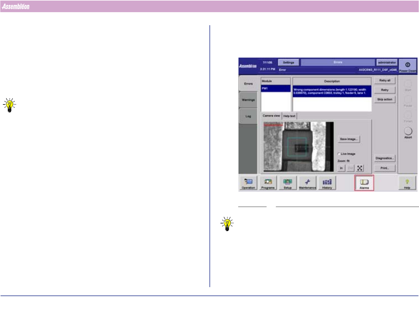4022 593 50621 操作手册 06.01 AX 系列 51 错误处理 10.3 错误解决步骤 10.3.1 诊断工具箱 图 58 诊断工具箱 使用诊断环境通过更详细的信息排除故障。 只有经过培训的合格维护或维修人员可以访问诊断环境。 10.3.2 CV 照相机气阀 图 59 CV 照相机气阀 当有错误指明元件 (1) 挡住照相机时,应取出该元件 (2) 。 为从 CV 照相机中取出该元件,请按机器背面的气阀。 1. 卸下背面 …