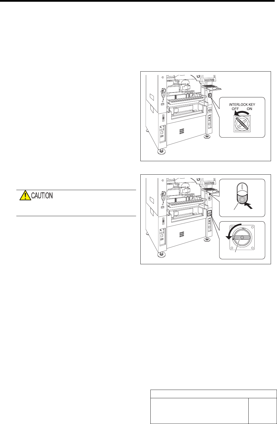 1 Turn the interlock key to OFF side, and turn