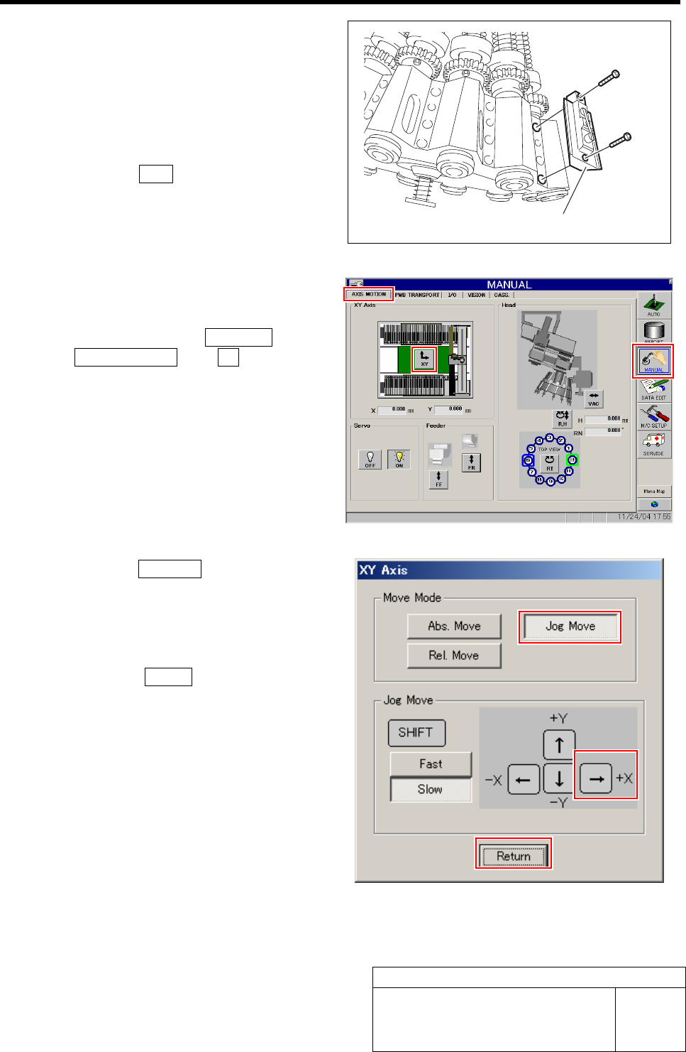 Phase Adjustment for Nozzle HLF-10418-01 Phase A djust ment for Nozzle SHEET 2/8 2 Remove all of the mechanical valves. 1. Loosen 2 cap screws to remove the mechanical valve. 2. Manually turn the turret and r emove the m…
