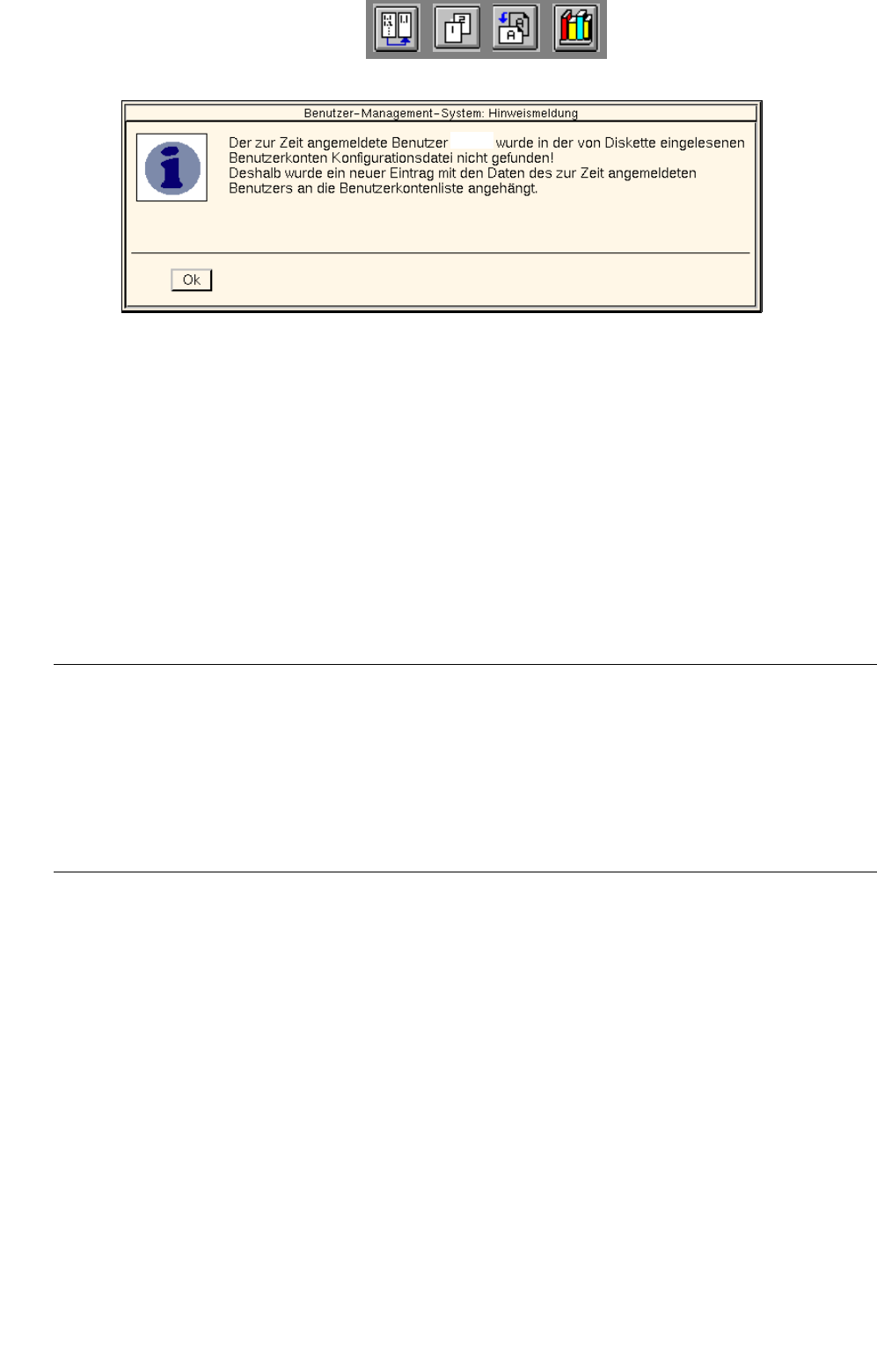 Hiermit wird die Benutzerkonten-Konfigurationsdatei auf einer Diskette gespeichert. Die Daten einer