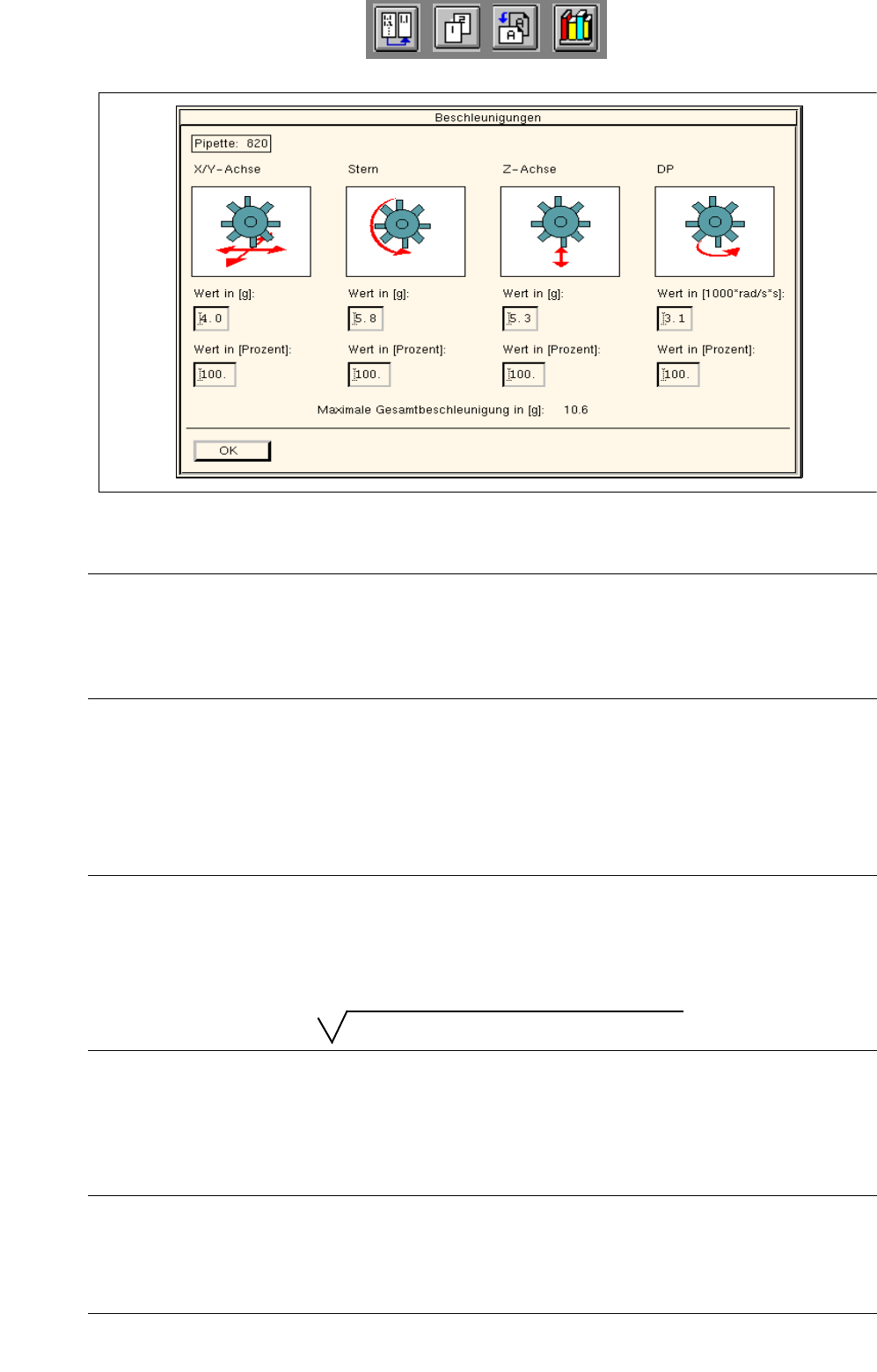 Abb. 6.1.11 Dialogfenster zur individuellen Einstellung der Beschleunigung für jede Achse
