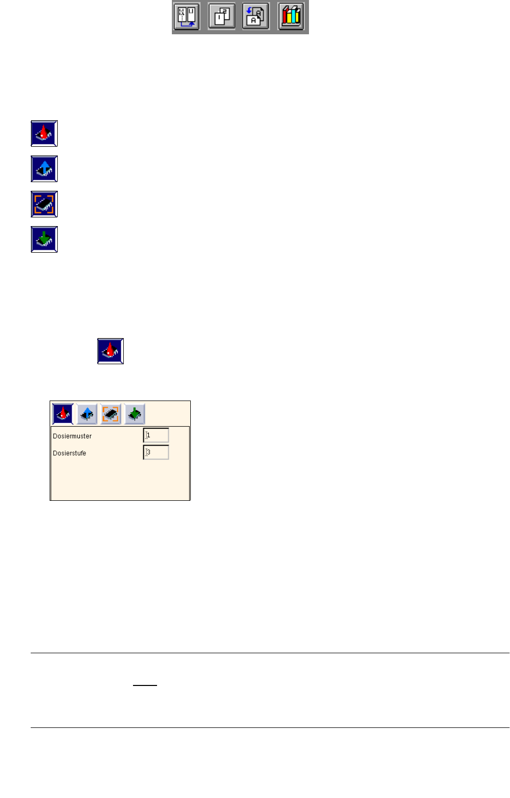 - Dosiermuster Hier wird die Nummer des Dosiermusters eingetragen, welches für die