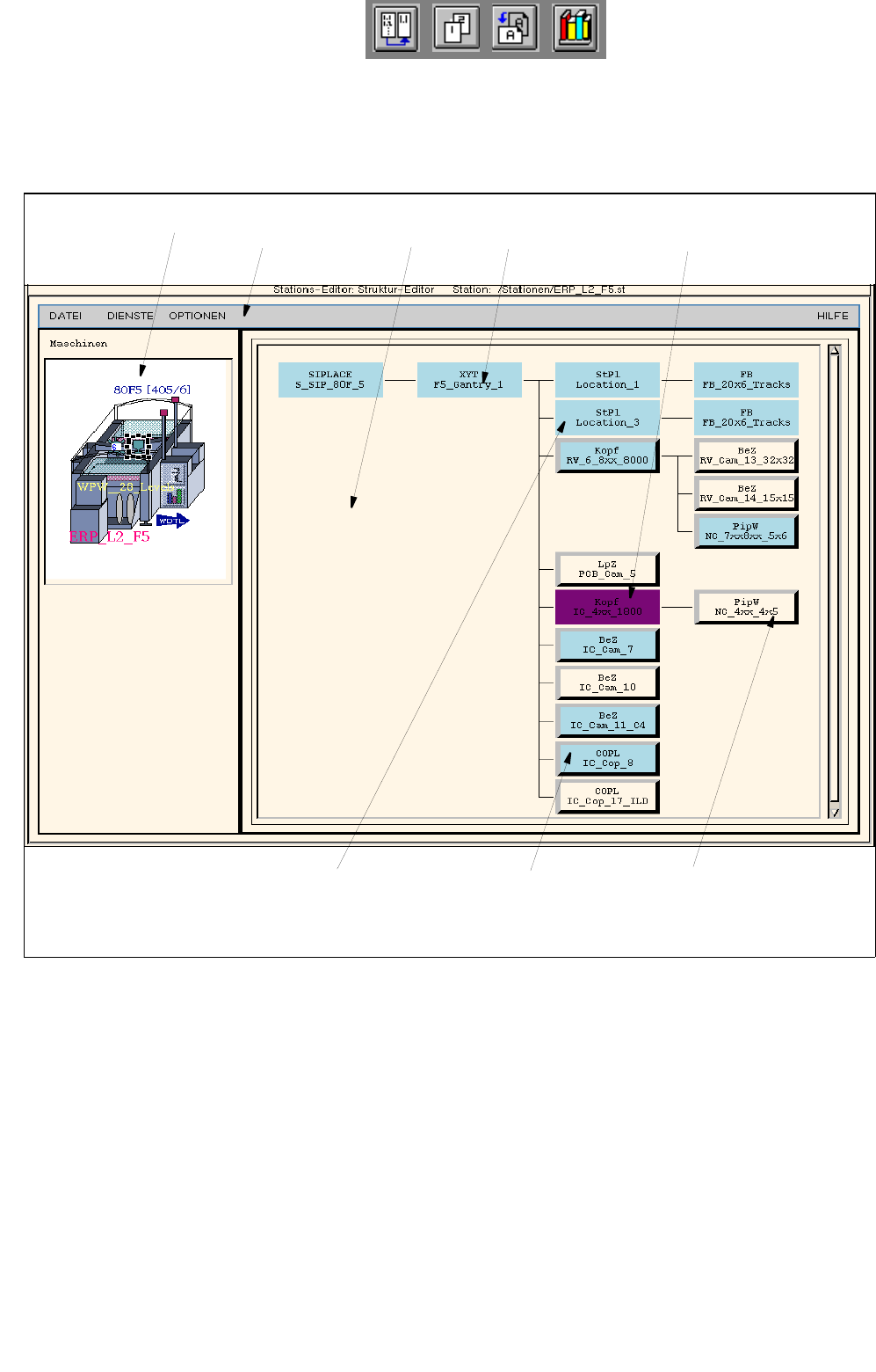 Abb. 12.1.1 Struktur-Editor (Maschinentyp "SIPLACE F5")