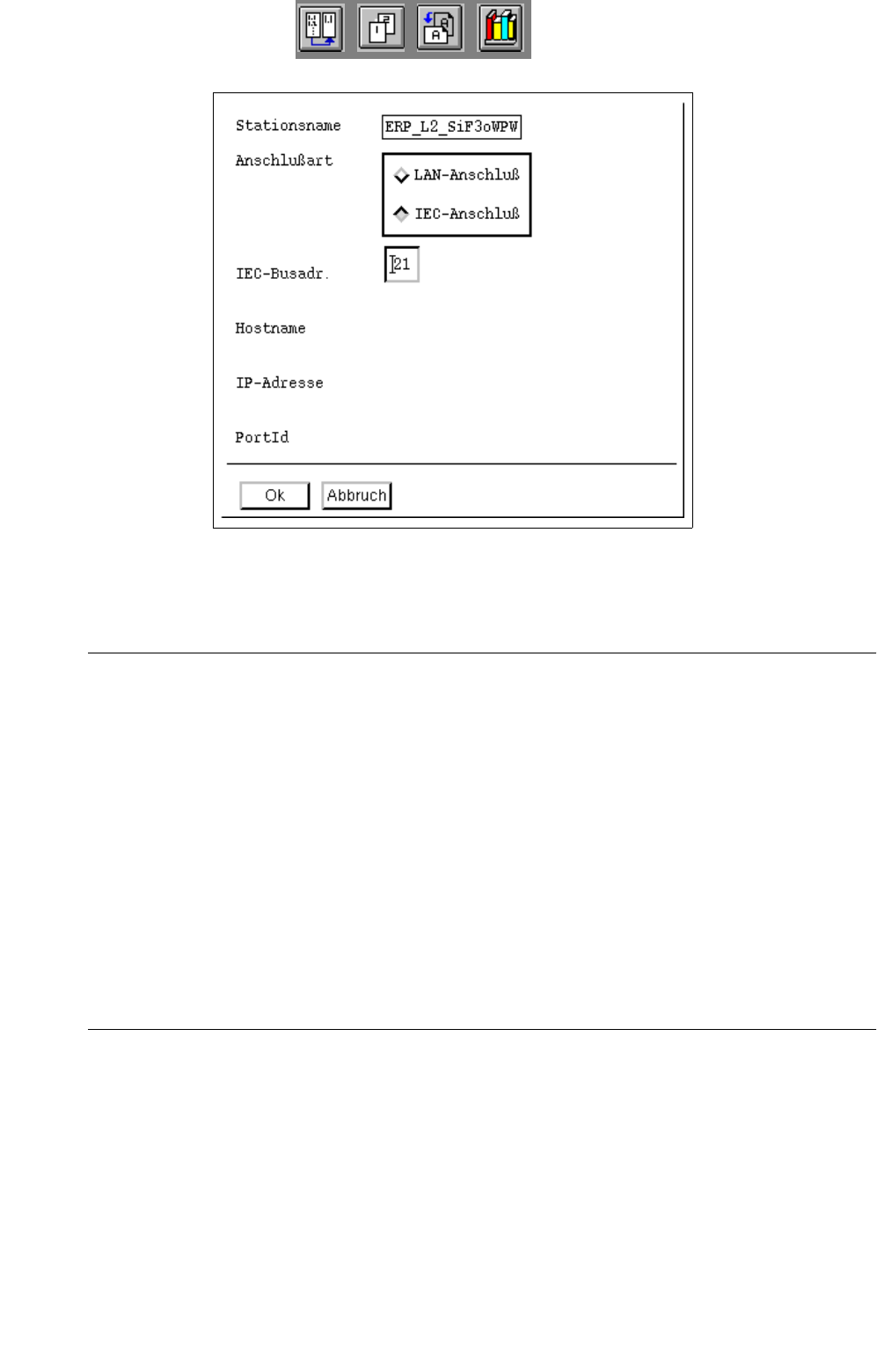 Betriebsanleitung Linienrechner UNIX 12 Produkti onsmittel / Stations- und Linienkonfiguration Softwareversion 503.xx Ausgabe 02/2002 12.2 Anlagen-Editor 389 I t I I ● Button LAN-Anschlu ß oder IEC-Anschluß für die Ansch…