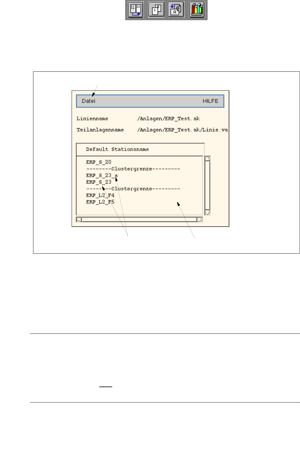 Betriebsanleitung Linienrechner UNIX 12 Produkti onsmittel / Stations- und Linienkonfiguration Softwareversion 503.xx Ausgabe 02/2002 12.2 Anlagen-Editor 395 I t I I Sichern der Konfiguration: ● In der Menü zeile die Fun…