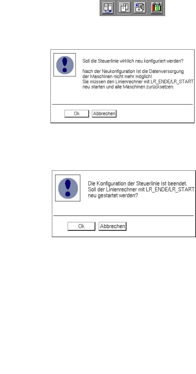 ● Die Sicherheitshinweise in der Dialogbox lesen und die Neukonfiguration der Fertigungslinie