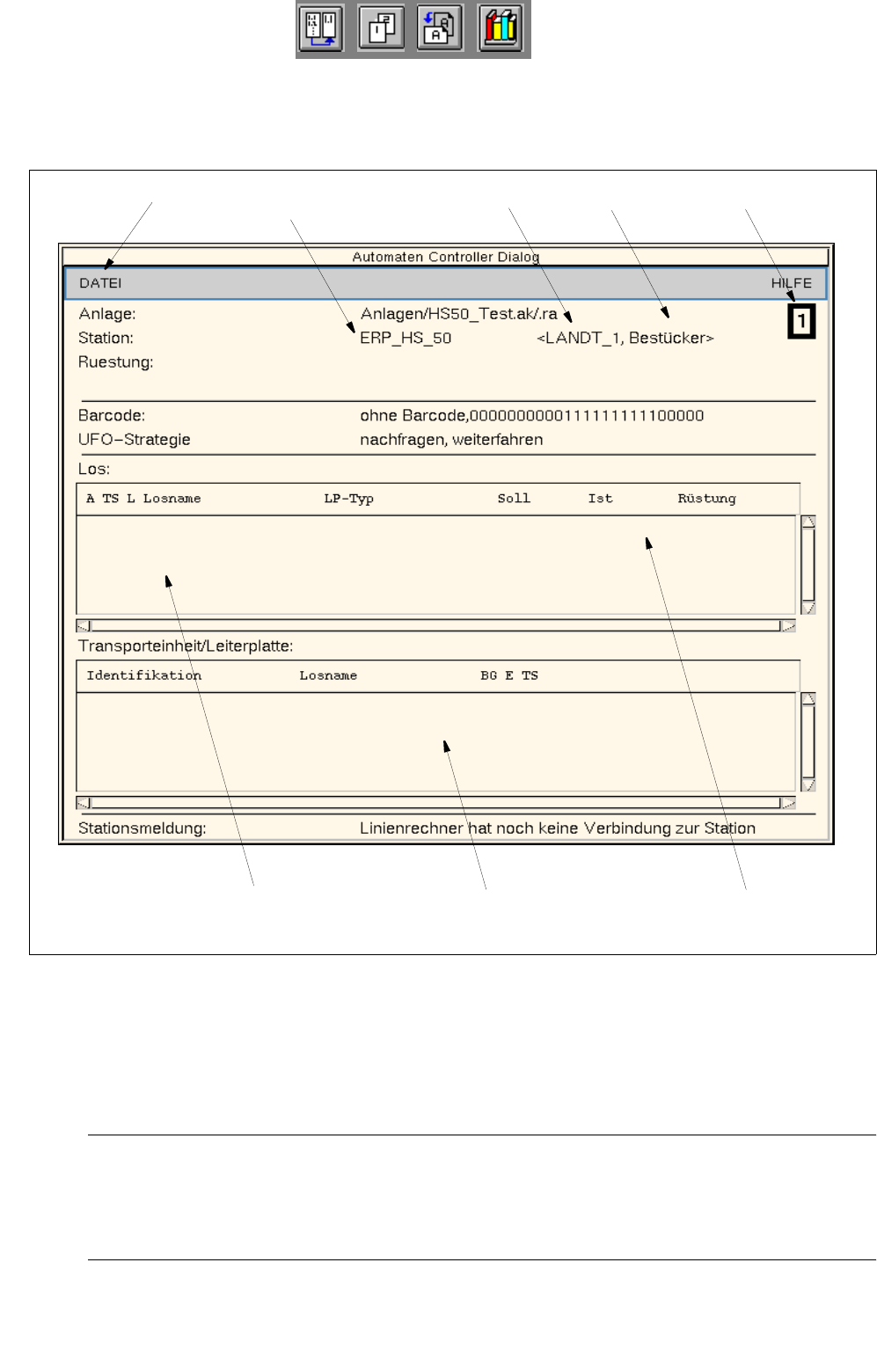 - Stationsmeldung: Zustand der Station (z.B. Linienrechner hat noch keine
