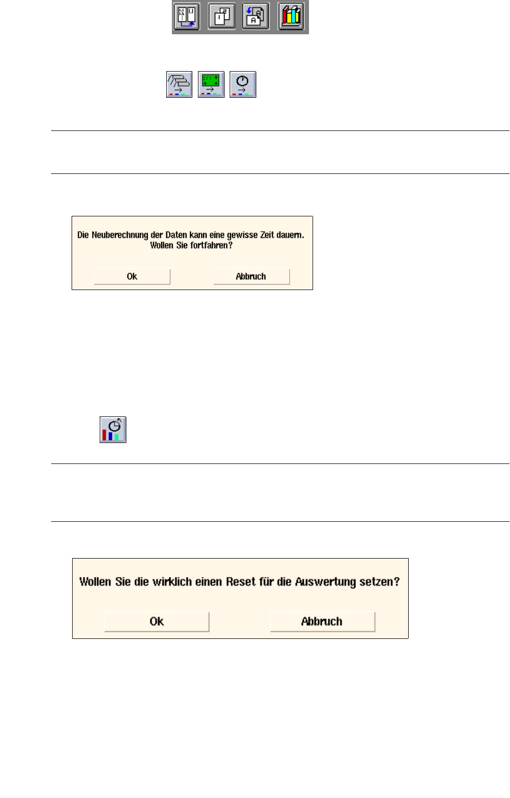 Die Ikone ist nur aktivierbar, wenn vorher die Auswertung vom "letzten Reset bis zum aktuellen Zeit