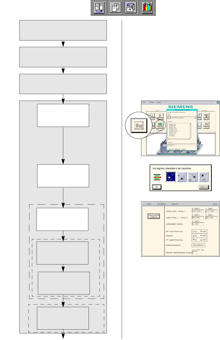 180° gedreht. Für jeden Nutzen wird eine Leiterplatten-Lageerkennung durchgeführt, dazu sind jeweils drei