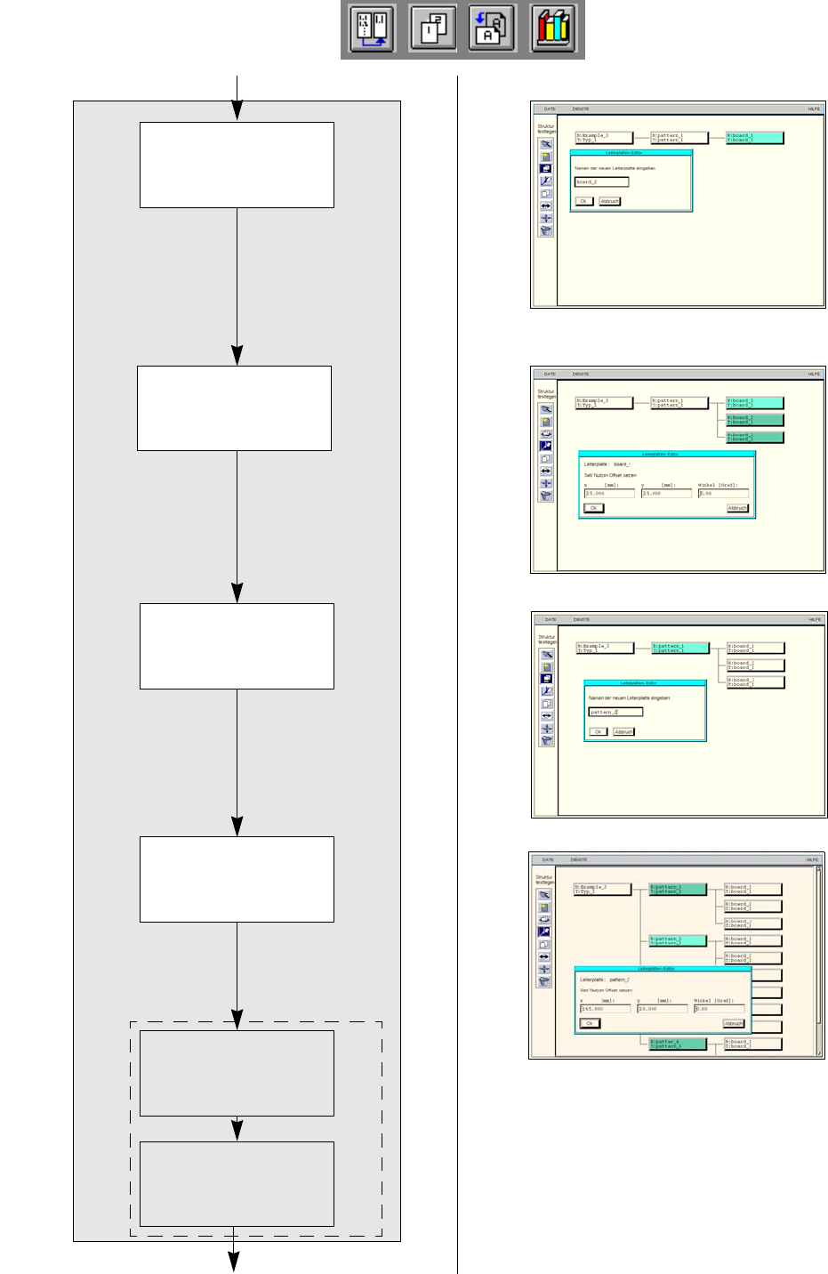 17.3 Beschreibung der Bauelemente und Leite rplatten Betriebsanleitung Linienrechner UNIX 17.3.3 Leiterplatte 3: Schwerpunkt Nutzentechni k Software-V ersion 503.xx Ausgabe 0 2/2002 574 I t I I Die Definition der Passmar…