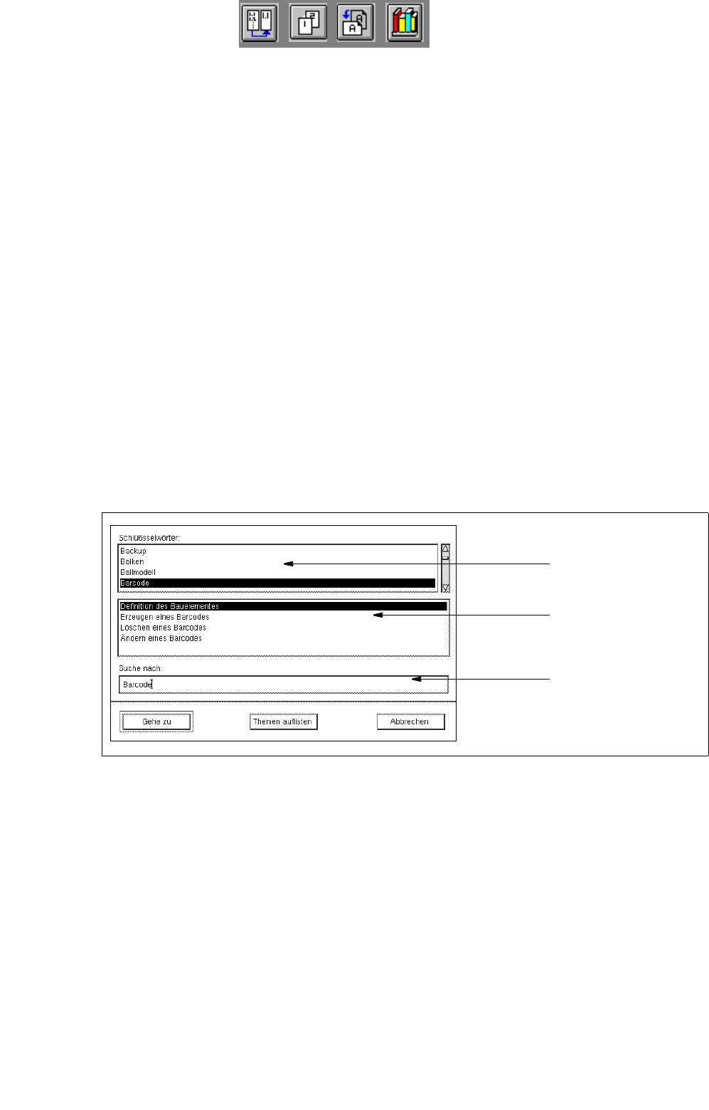 In der Kommandozeile sind Buttons enthalten, mit deren Hilfe sich der Anwender in der Index-Hilfe bewegen kann.
