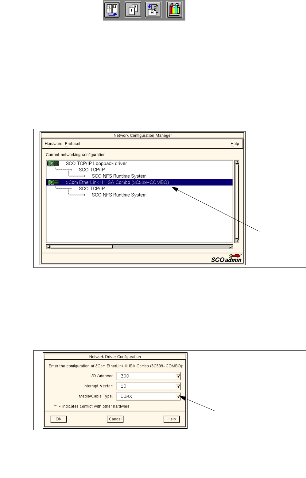 Das UNIX-Fenster "Change network configuration" wird geöffnet und darüberliegend das Hauptfen-
