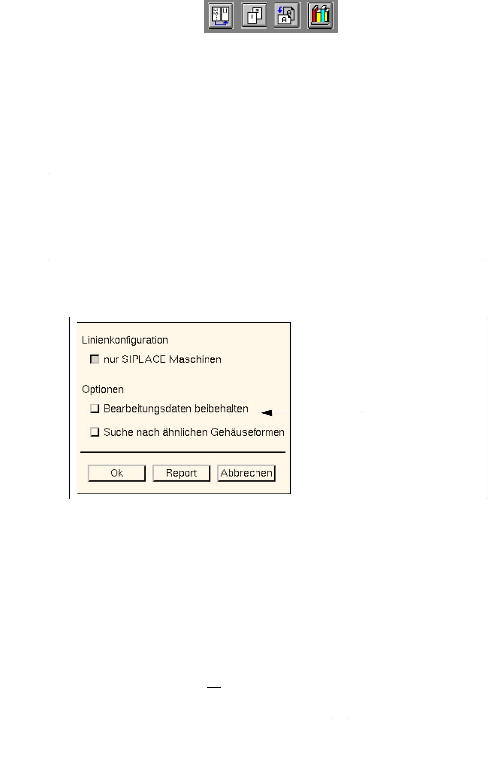 Als Defaulteinstellung ist der Button nur SIPLACE Maschinen aktiviert. Diese Einstellung wird beibe-