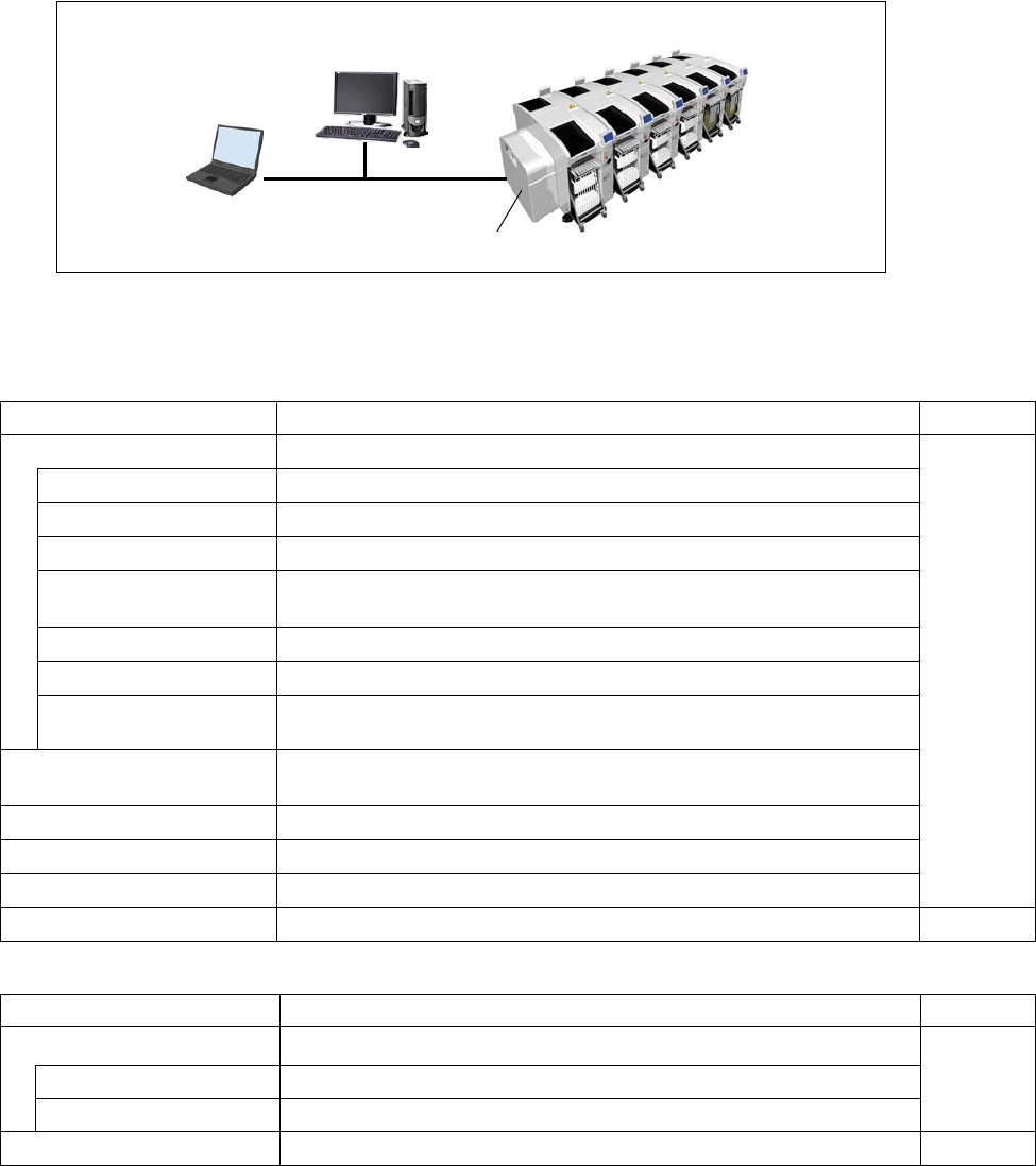 NPM-D3A 2021.0219 - 39 - ■ NPM-D3A 生产线连接例子 请客户准备 FA 电脑以及 HU B 的情况时,也同时 需要准备 LAN 电缆。 请根据 NPM-D 3A 的连接 数量,进行相应准备。 HUB 和 LAN 电缆基本规格 规格 IEEE802.3 基准 数据传送率 10BASE-T/ 100BASE-T X/ 1000BASE-T (Auto - Negotiation) 推荐型号 非托管 HUB: …