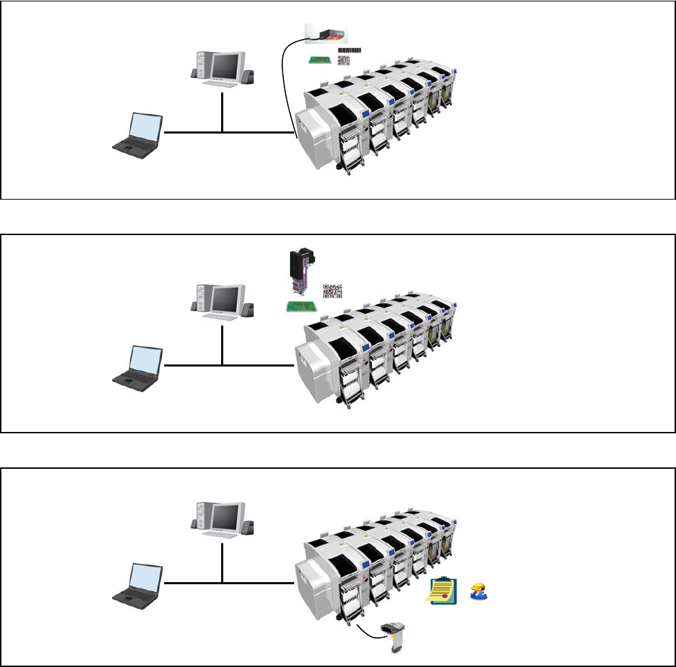 在前端的传送带设置外部安装扫描器,通过扫描器读取基板的 1D/ 2D