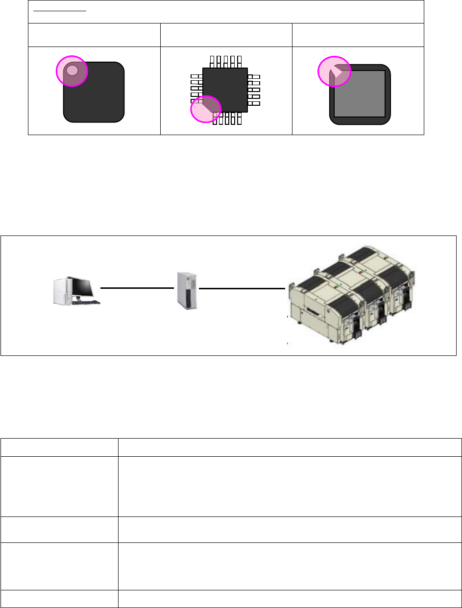 NPM-D3A 2021.0219 - 82 - 5.10 吸附前检查(极性) 在从托盘、以及从编带供料器吸附元件之前,使用贴装头相机对元件拍照,进行极性检查,以防止装载错误 。 误设置的防止 识别以下的某一个特征,检测元件朝向的良否,防止误生产。 极性标记 倒角 亮度特征 在检查结果中,如果极性方向正确,则吸取元件进行贴装。 如果方向错误,则显示元件图像,并单一停止 (Single stop) 。 ■ 系 统基本构成 由设备进行识别图…