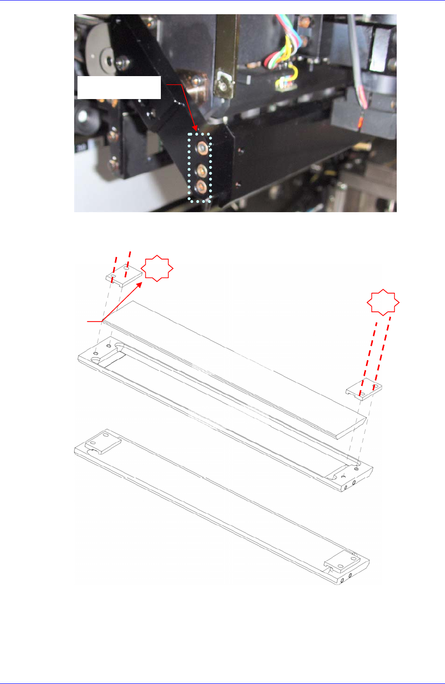 Head Module 4-29 4. 请拧开下图 1 号固定螺丝 (M3 – 4 个 ) 及 Spring W asher(4 个 ) ,替 换 Mirror 。 Mirror 固定盘组装时 , 利用力矩扳手进行 组装。连接力矩为 7.0 kgf.cm ²。 5. 如果替换了 Mirror Support ,则需要以下 Calibration 作业。 Fly Camera Scale & Rotation ( 请参照 “ …