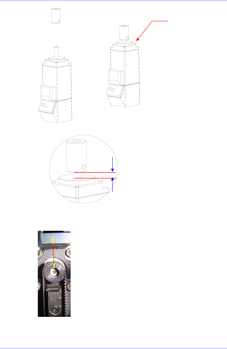 à 皮带轮上未标记状态,仍然把同步齿型带组装到电动机皮带轮。