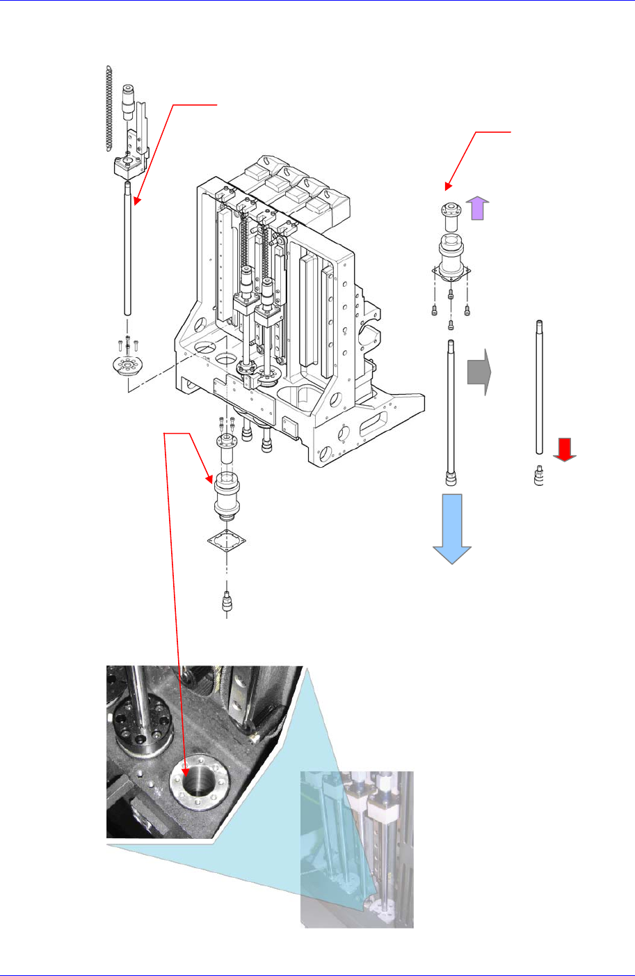 5. 向下推动Ball Spline进行分离后(A), 利用扳手分离Ball Spline和喷嘴座。然后向