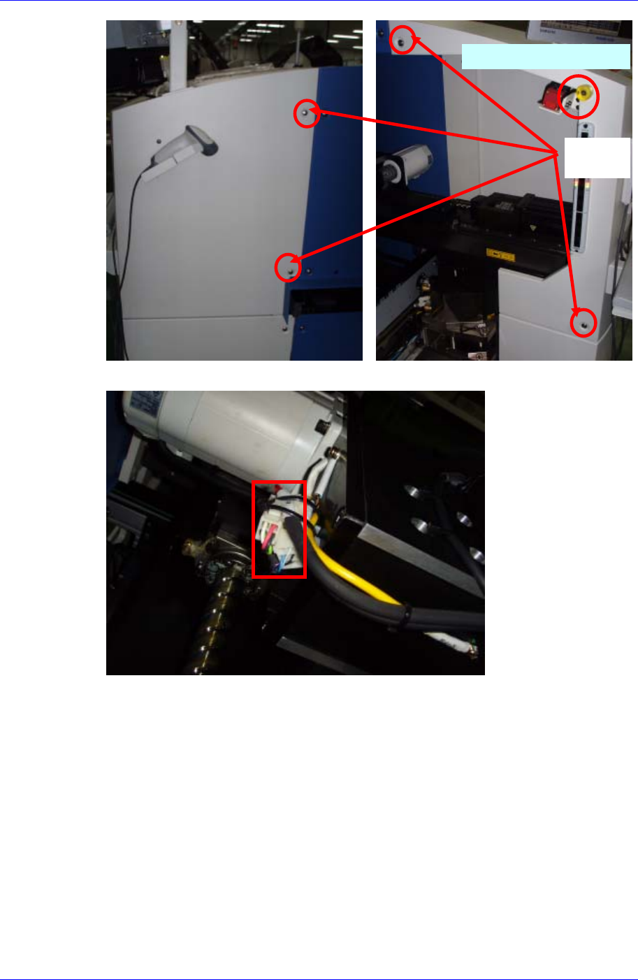 X-Y Frame 6-9 4. 从 X 轴电动 机分离出电动机电源及放大机电 缆连接器。 5. 请除去连接 X 轴电动机和滚珠丝杠 的联接器 Set Screw(M4) 。但,只替换 X 轴电 动机时,只除去离电动机近的 Set Screw ,只替换滚珠丝杠时,只除去离滚珠丝 杠近的 Set Screw 。 除去固定 螺丝 除去托架固定螺丝