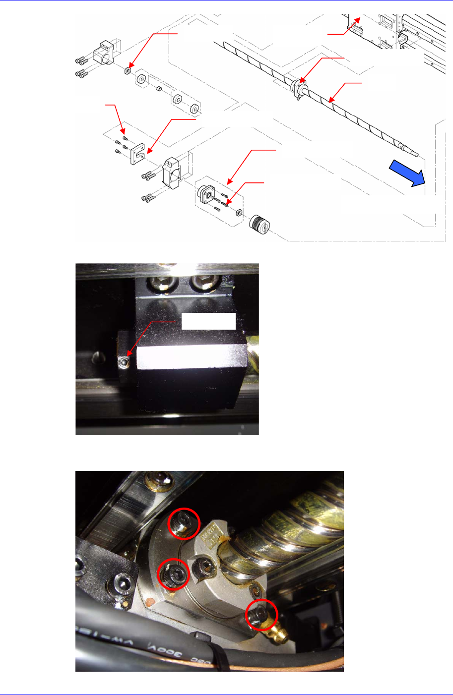 X-Y Frame 6-15 3. Lock Nut 时请除去 Lock Nut 的 Set Screw 。 4. 拧开 Ball S crew 固定在 Head Base 的固定螺丝 (M3-4 个 ) ,从 Head Base 分离出 Ball Screw Nut 。 Support Unit Cushion-X 固定螺丝 (A) 固定螺丝 (B) Lock Nut Ball Screw 分离方向 Ball Screw Nut He…