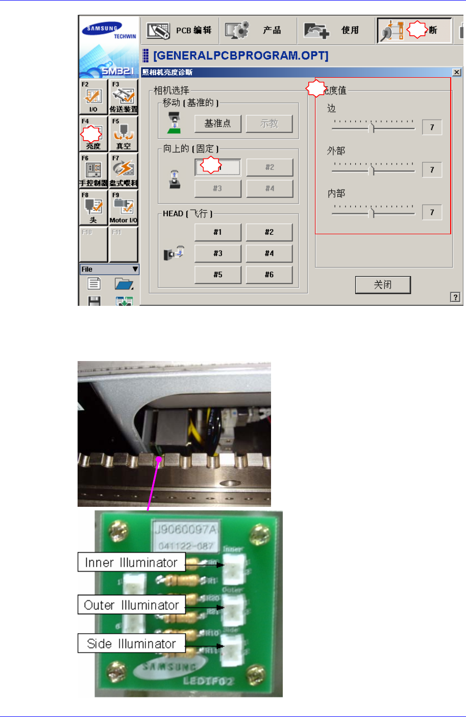 4. Stage Camera内有三种照明LED Board。请依次变更各照明(Side, Outer, Inner)值