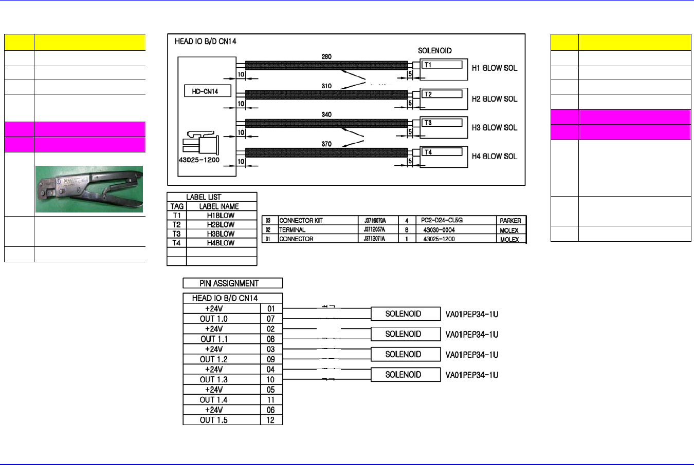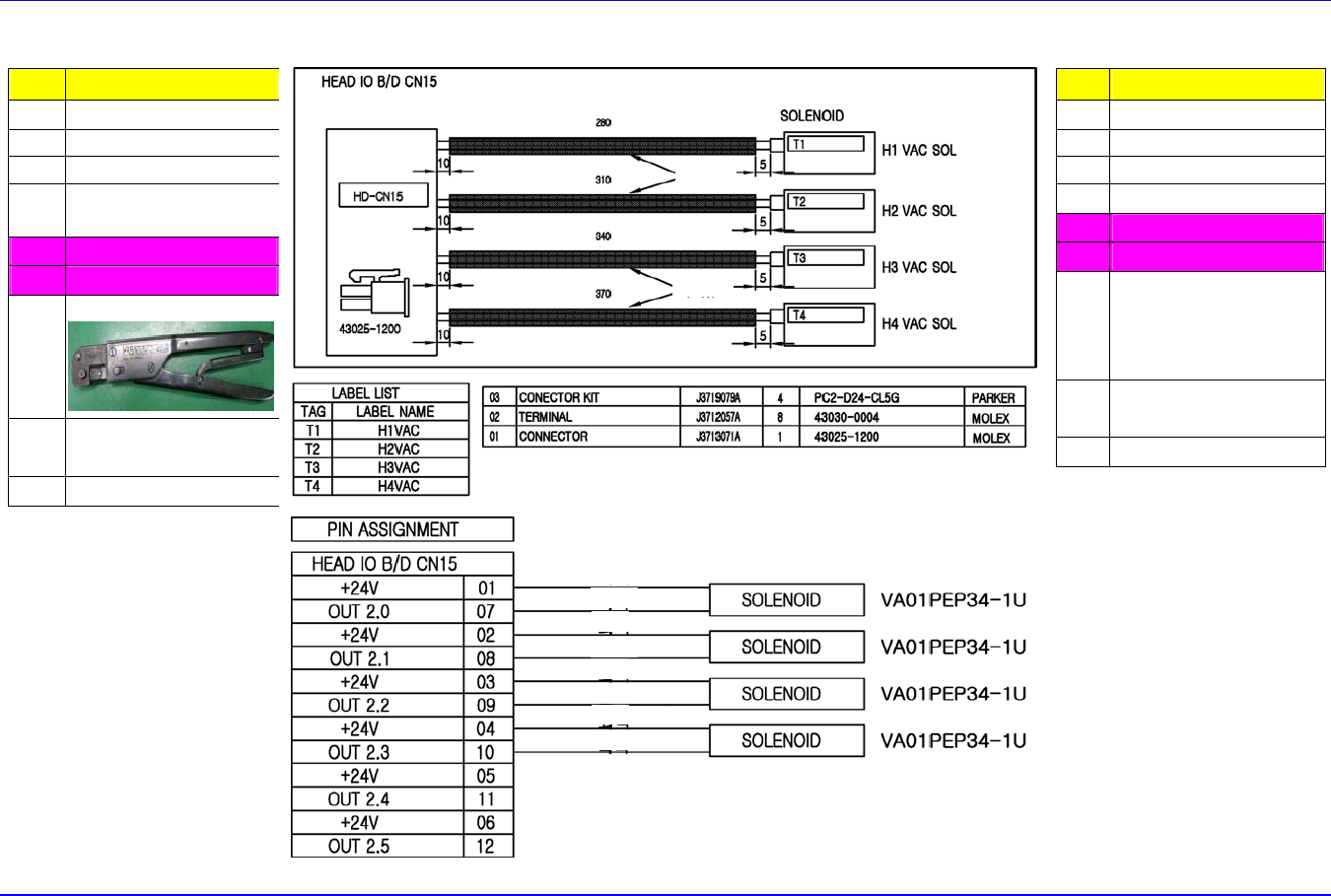 Flat Cable 作业指南 9-17 9.4.14. Head V acuum/Blow Sol. Cable (No. 17) 项目 详细内容 位置 Y Frame Bracket Maker Hirose Pin DF1B-2428SCF 连接器 DF1B-4ES-2.5RC DF1B-10ES-2.5RC 购买处 Hirose Korea 价格 作业 工具 规格 -DF1B-T A2428SHC 工具 购买 供应处 : Hir…