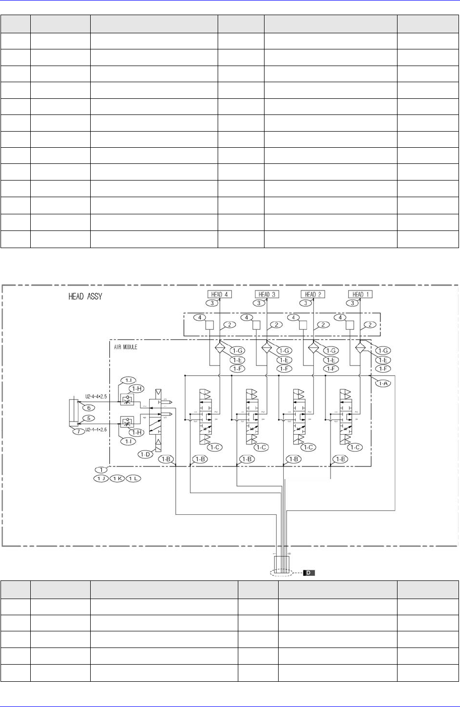 Air Ass’y 10-5 NO. P ART NO. P ART NAME Q’TY TYPE REMA RK 1-E J6708021A V ACUUM FIL TER 4 LF-M5-60-ZK 1-F J7458002A FIL TER ELEMENT 4 LF-M5-60-Z-ELEMENT 1-G J671 1262A MINI FITTING 4 BC-03-M5 1-H J6703039A SPEED CONTROLL…