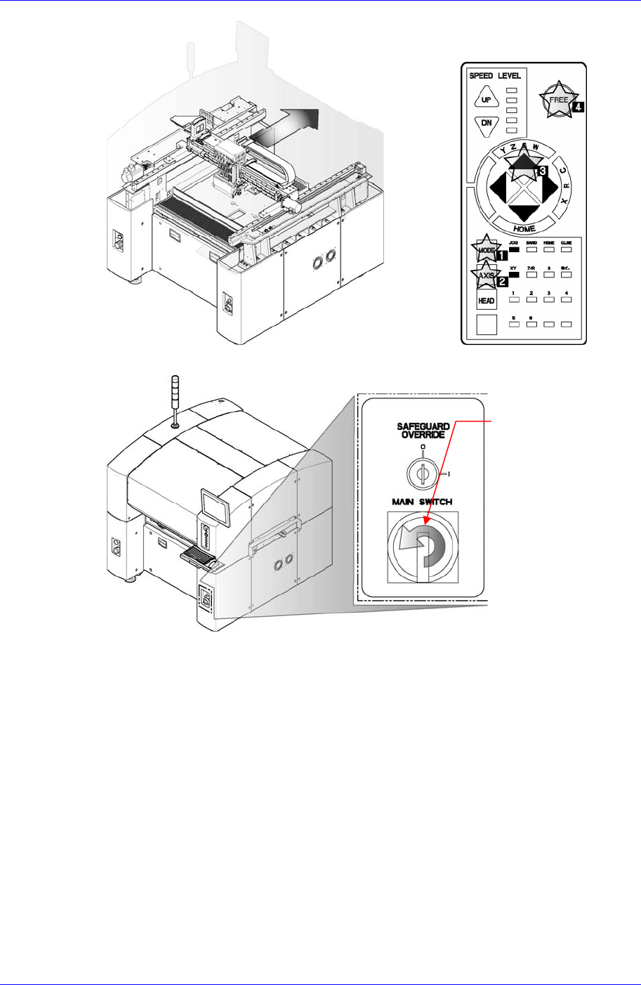6. 打开设备前面的Main Switch后参照 “4.10 Vacuum/Blow“设置头部Vacuum。