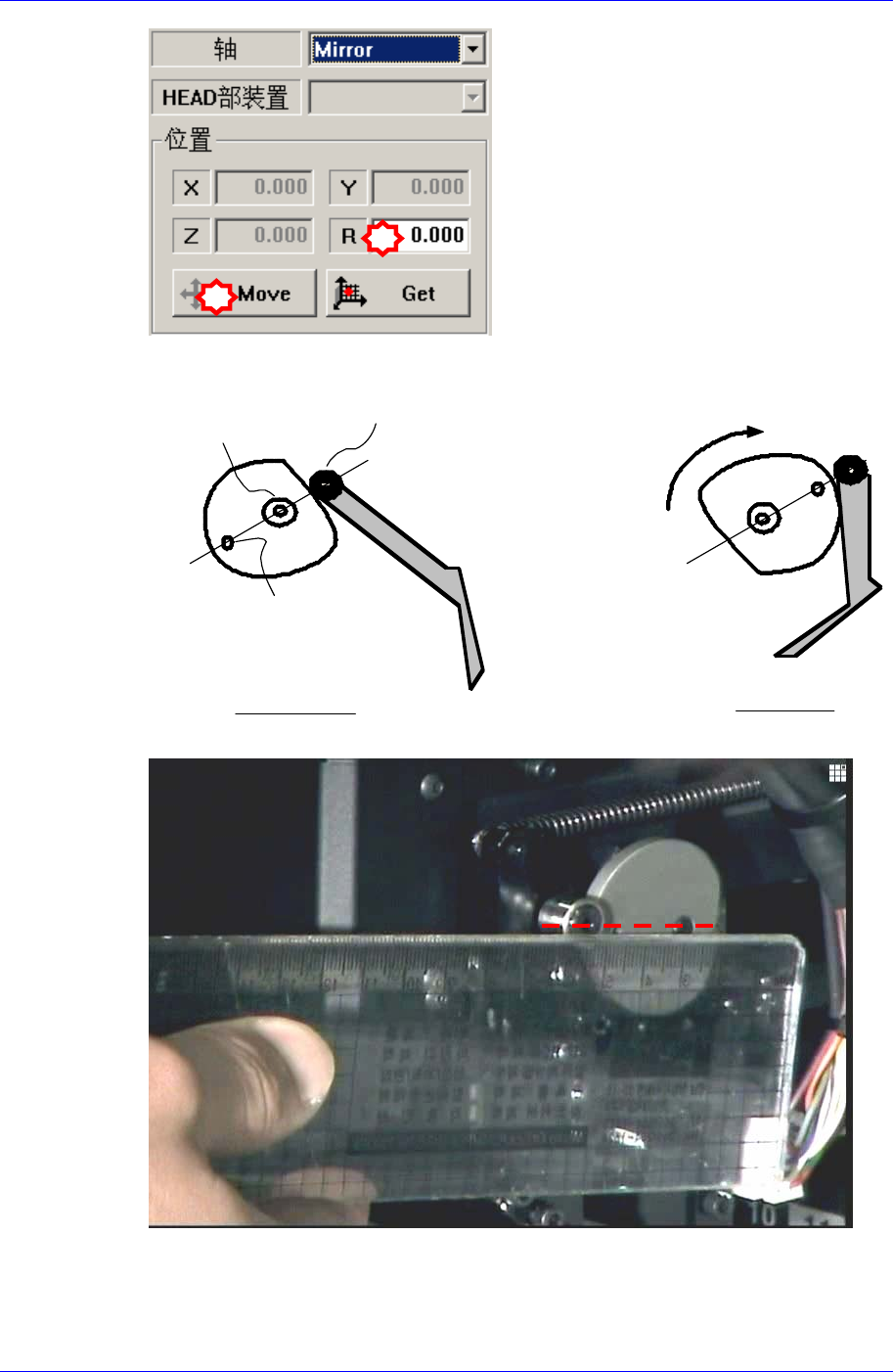 5. 下图3点不一致时,如下图利用示教框使Idler wheel, CAM driving axis, Mark 3
