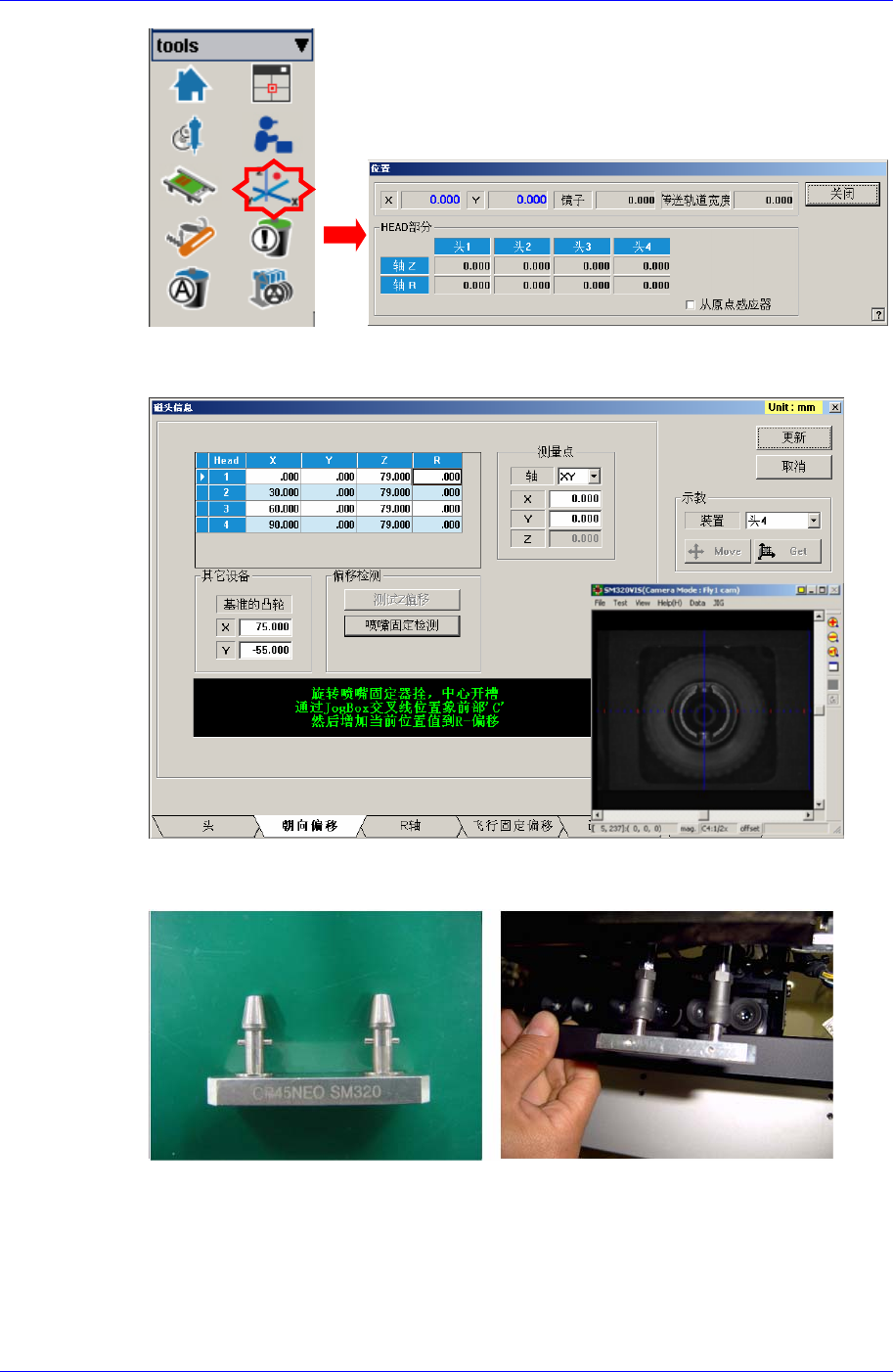 为自动执行该校正,应先执行R Offset Calibration,使用校正喷嘴。使用校正喷嘴