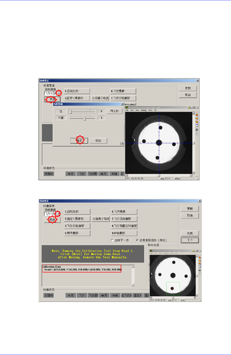 框显示的Calibration Tool上的 Fiducoal Mark明显为止调整照明亮度后点击<下