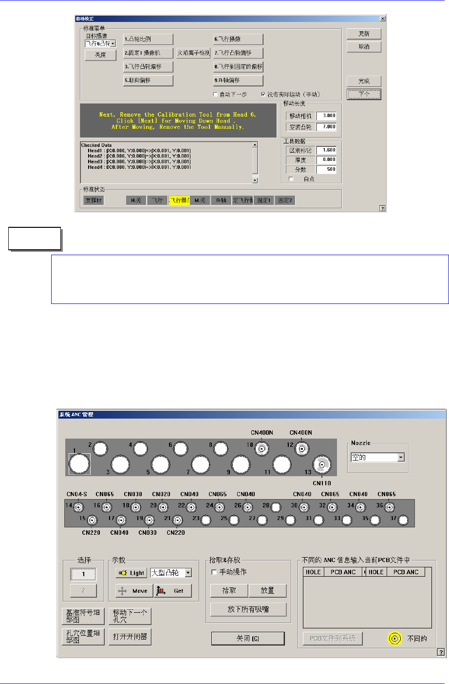Calibration 3-23 以下是 Fiducial Mark 示教顺序 1. 在 <4. 示教 > 区域的 < 装置 > 组合框选择“ MoveCam ”。 2. 利用示教框把贴片头 的 Fiducial Camera(Move Camera) 移动到需要示教的 Fiducial Mark 位置。 3. 移动贴片头使 Vi s i o n 显示器的十字线 (Cross hair) 与 Fiducial M…