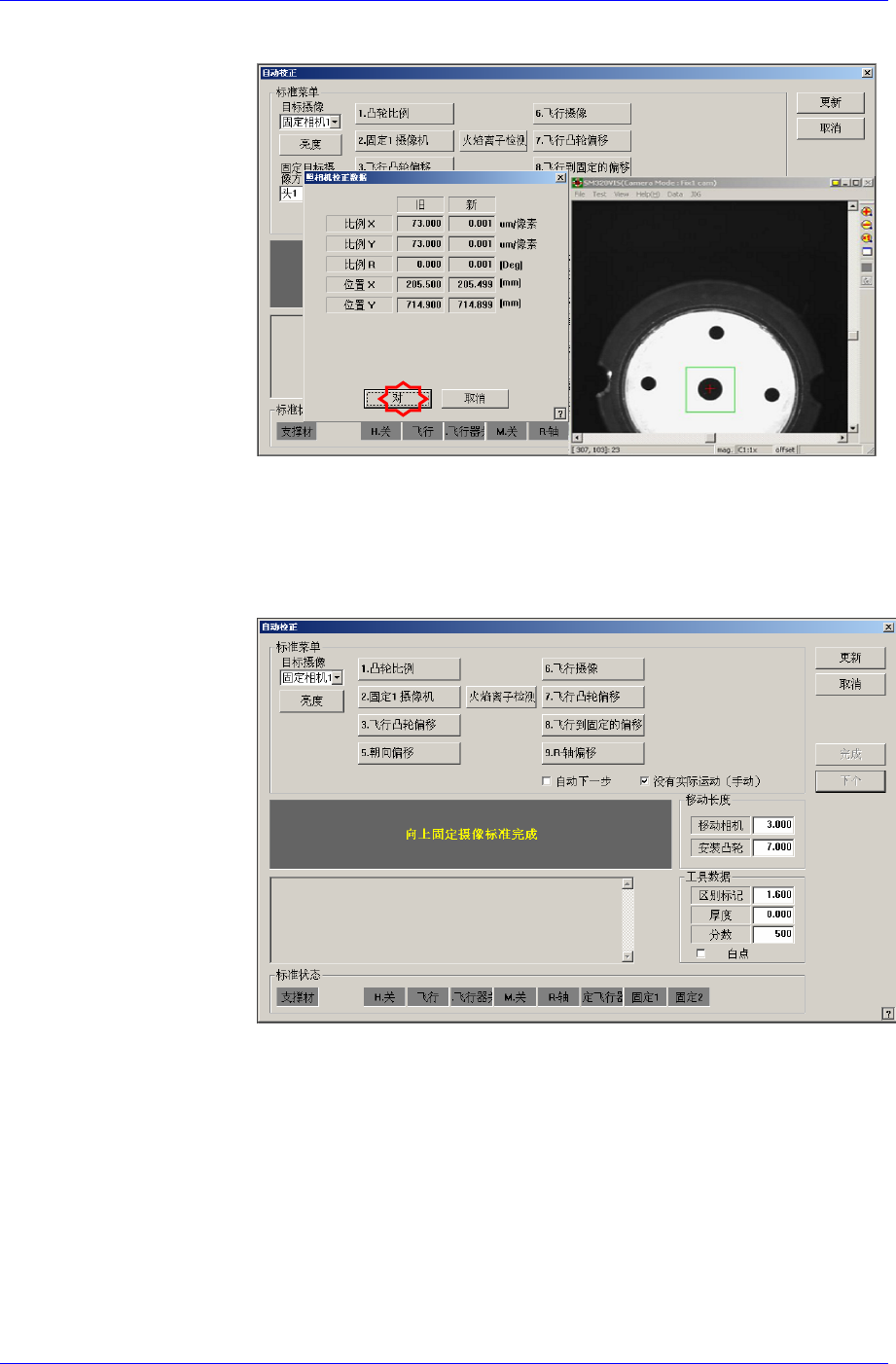 Calibration Tool上的 Ficucial Mark明显,调整照明亮度后点击 <下