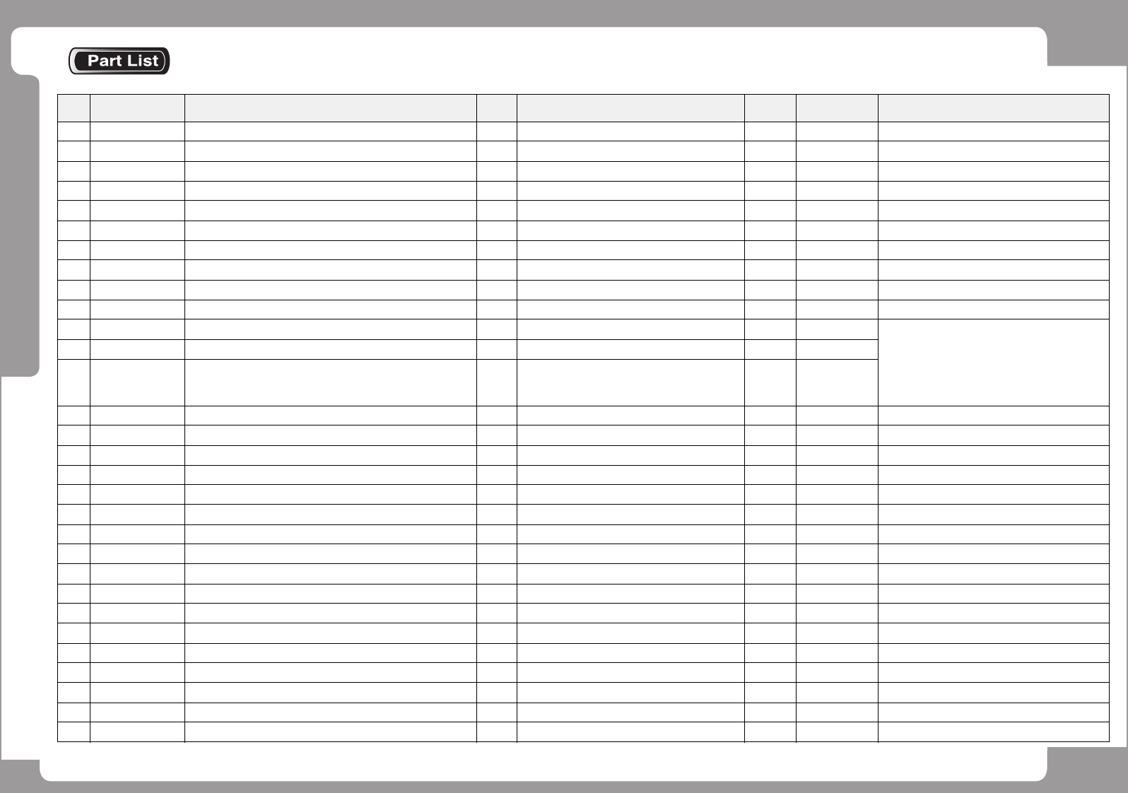 NO. PART NO. PART NAME Q'TY Old No. Supply Supply LT Reference