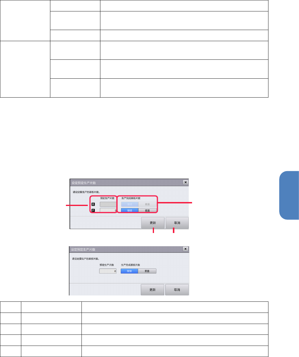 (c) 更新 更改生产预定块数及生产完成基板块数,关闭对话框。