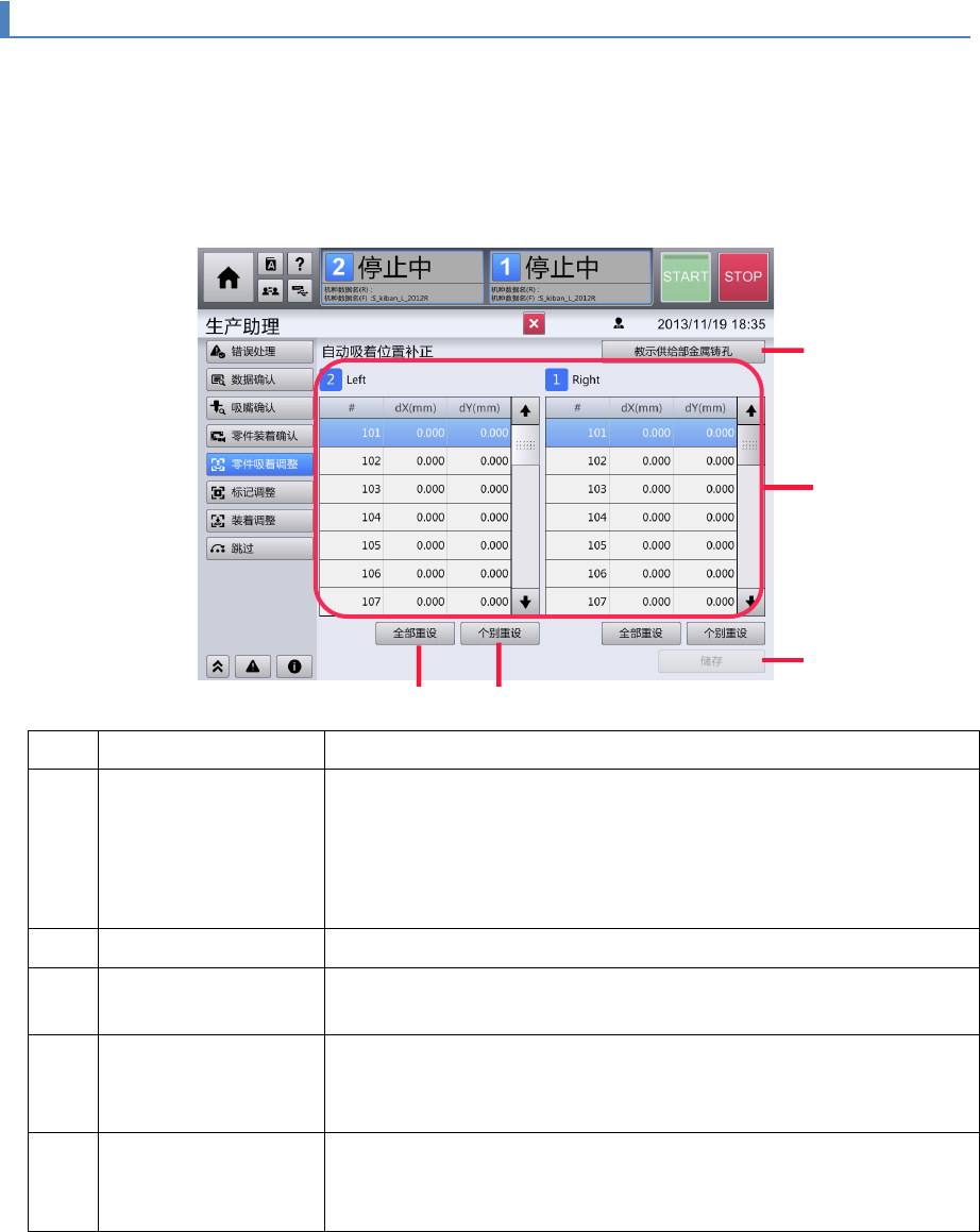 此外,根据机种切换等需要,可以供给部为单位重置自动吸附位置补正的补正值,或打开供给部金属铸