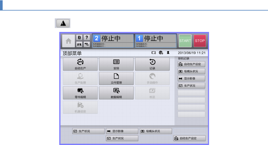 触摸子菜单面板中的 ,可显示当前和过去的[警报确认]对话框。