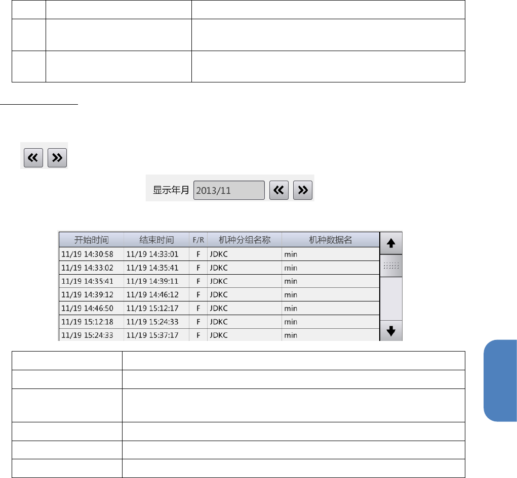 第 4 章 操作篇 4- 8. 记录 [寻找] - [机种统计]中的生产 管理信息列表 名称 说明 开始时间 开始统计生产管 理信息的时间 结束时间 结束统计生产管 理信息的时间 当前正在生产的 数据显示为[ 设定机种]。 F/R 显示生产了(正 在生产)对象 机种的轨道 开始,结束日期 设定的详情 名称 说明 开始时间 搜索条件的开始 日期 触摸 [设定]设定。 结束时间 搜索条件的结束 日期 当前正在生产的 数据显示为[ 设定机种]…