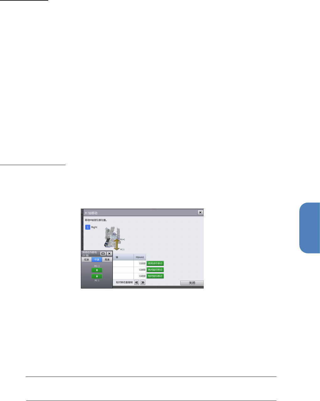 H 轴将从当前位置按[相对移动量]中指定的距离移动。