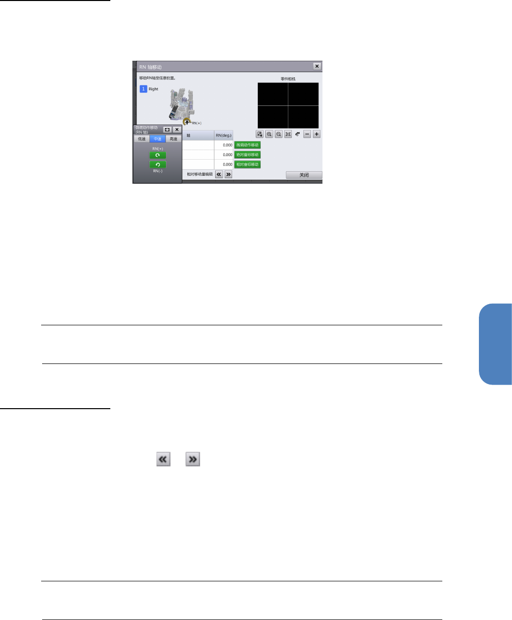 RN 轴将从当前位置按[相对移动量]中指定的角度旋转。